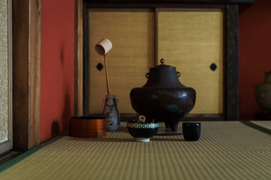小松の茶湯文化の特徴として、小松城に隠居した前田利常公が武家だけでなく商人や町人に広く茶湯を奨励した背景があります。とら屋陶器店でも毎年 5 月に行われ 250 年続く小松市最大のお祭り「お旅まつり」でお茶席を開催してきました。本プログラムでも絵付け体験の最後に幸生氏自らお茶を点てます。ゆったりとした時間の流れるお茶室の中で、五感で小松の町人文化の本物の歴史と趣を味わえます。