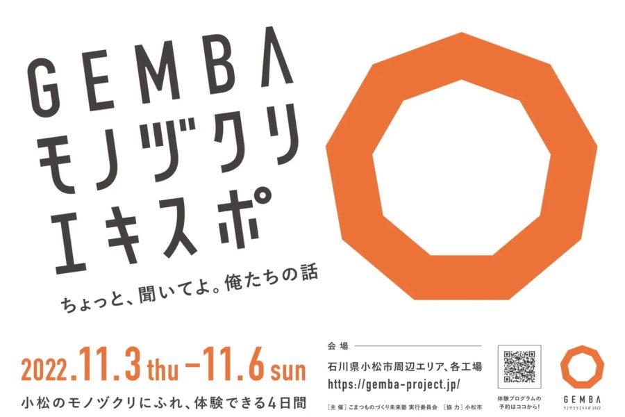 【ニュースリリース】「GEMBAモノヅクリエキスポ2022」開催決定!石川県小松市内35の事業者が参加。50の見学・体験コンテンツが楽しめる!その道の職人と共に、ものづくりに没頭できる4日間。