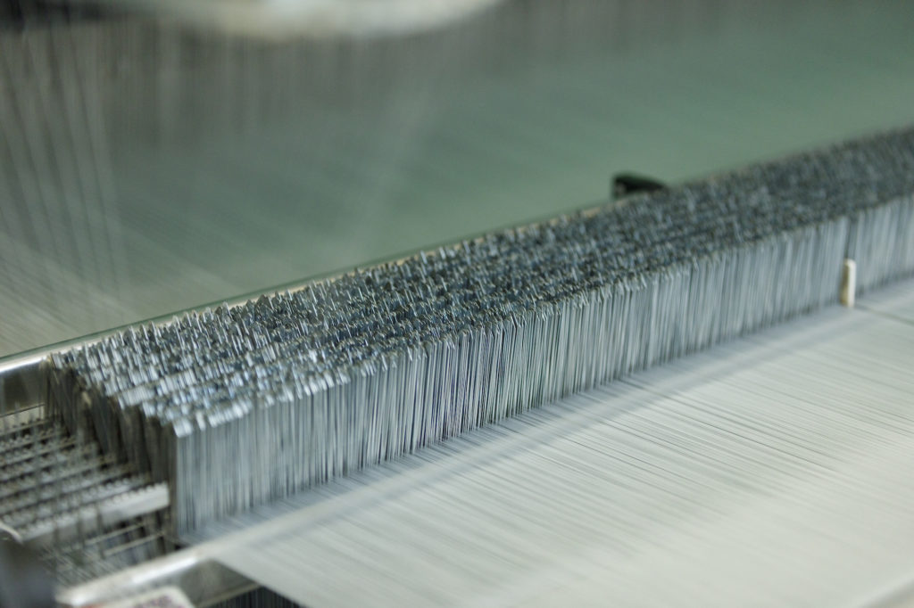 海外の大規模生産拠点に押され、日本のものづくりはどんどん縮小しているのが現状です。織りネームも例外ではなく、石川県小松市と福井県丸岡市で日本の 100 %の織りネームが生産され、最盛期には小松で 200 社、丸岡で 800 社あった織りネーム企業も、今や小松市では 20 社程度となってしまいました。分業化が盛んな繊維業界の中で、中川産業では「外に頼らないで自社で製造できるように」と内製化を進めた結果、製品の加工や検品、折り曲げやカットもすべて一貫生産で安く仕上げることができるようになりました。本プログラムの見学では、織りネームのことなら 1 から 10 までやっている中川産業の内部に潜入。日頃何気なく手にしているタオルについている織りネームがどうやってつくられていくのか、見学できます。