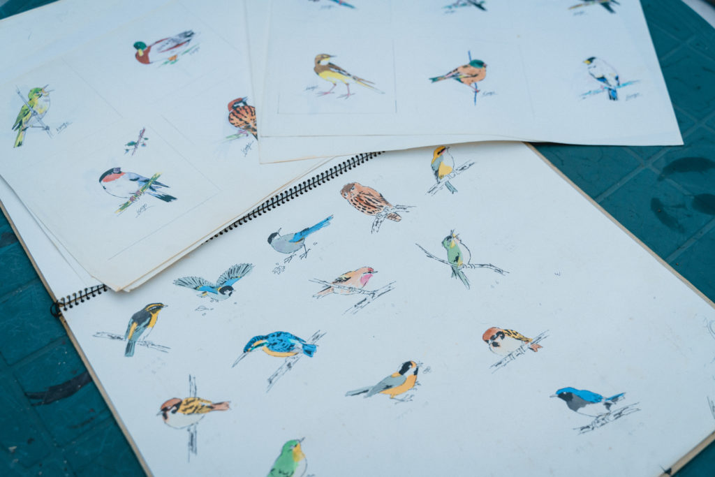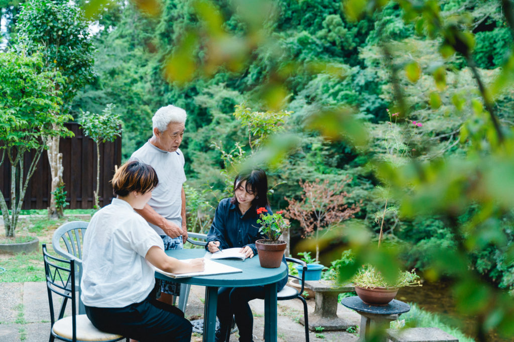 自然に囲まれた裏庭でスケッチするも良し。持ってきた好きなイラストでも良し。自分の好きな絵で上絵付けができます。
