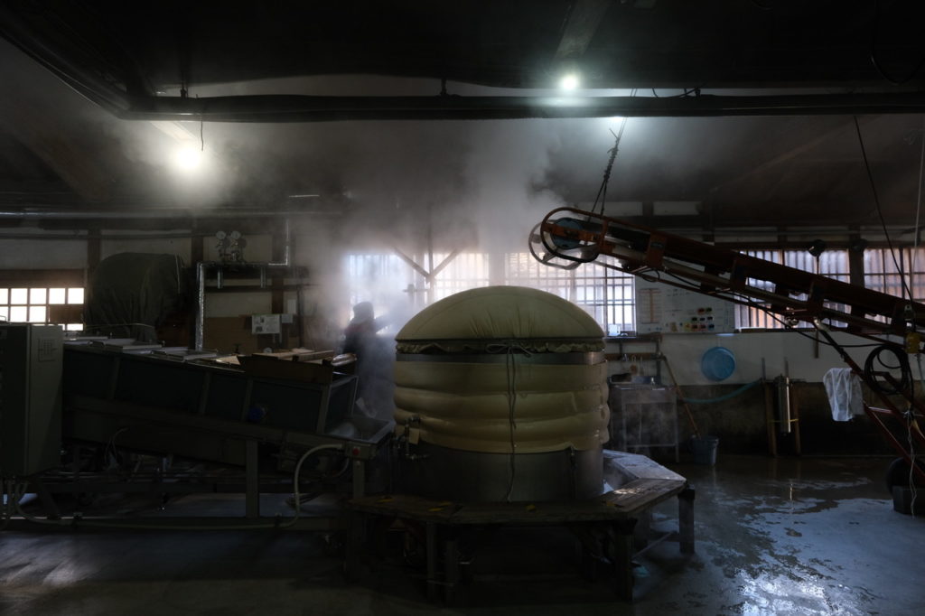 なんといっても東酒造の酒づくりにおいて欠かせないのが、日本遺産にも指定されている小松の観音下石を活用した石蔵で行われていること。建物そのものも、国の登録有形文化財に指定されています。見た目もカッコいいですが、機能的にも優れている石蔵のどんなところが酒造りに有効なのか、実際に蔵の内部に入って仕込みの様子を見学します。仕込み真っ只中の酒蔵は蒸したお米やお酒、麹の匂いを感じることもできるでしょう。説明を聞いたり観たりするだけでなく、身体中で酒蔵を体感することができます。